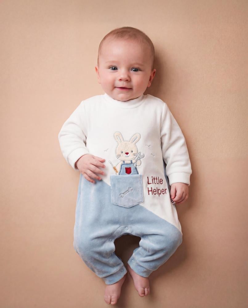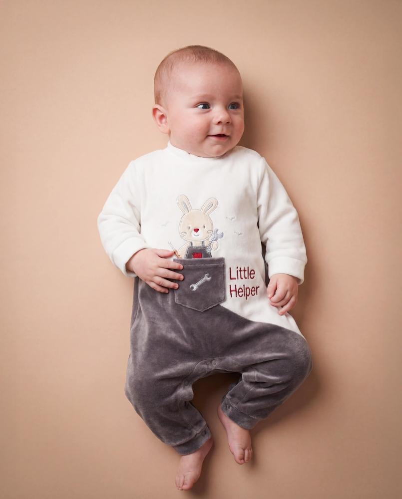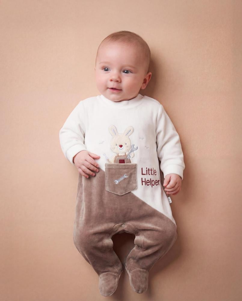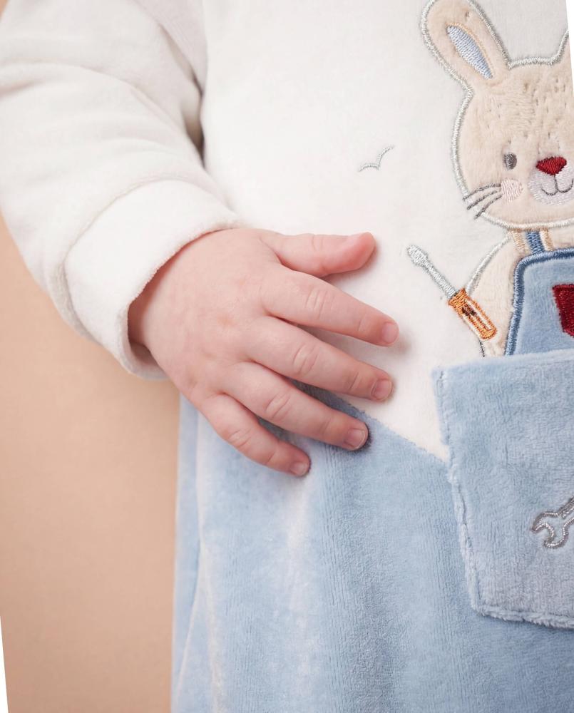 أفرول شتوي مواليد مخمل بتطريز أرنوب ميكانيكي لإطلالة دافئة