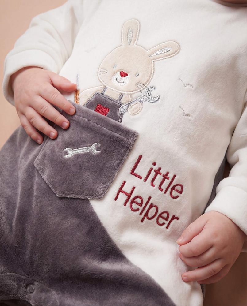 • تصميم مبتكر من أفرول بيبي شتوي بتطريز أرنوب ميكانيكي محبب للأطفال، مع جيب عملي وعبارة LITTLE HELPER التي تمنح القطعة طابعًا مرحًا وجذابًا للاستخدام اليومي.