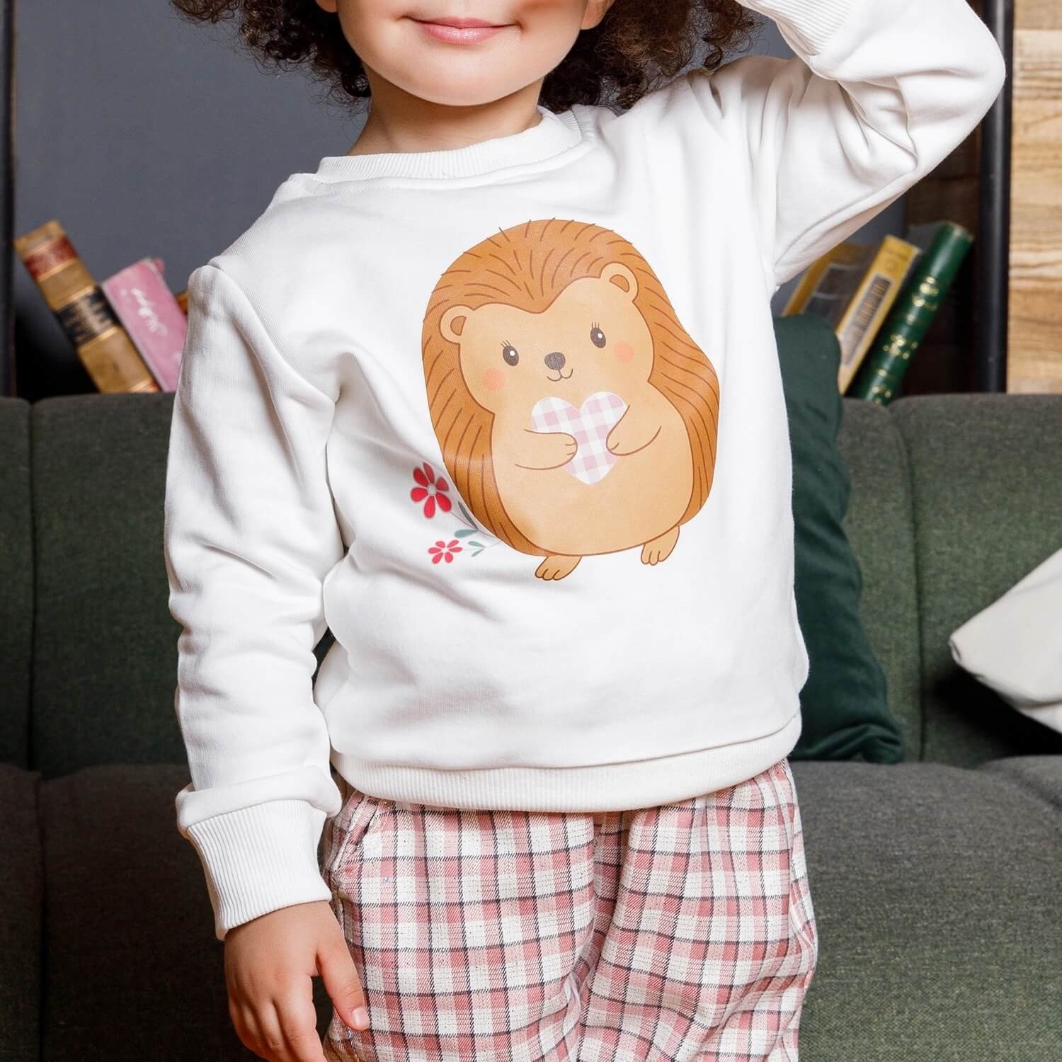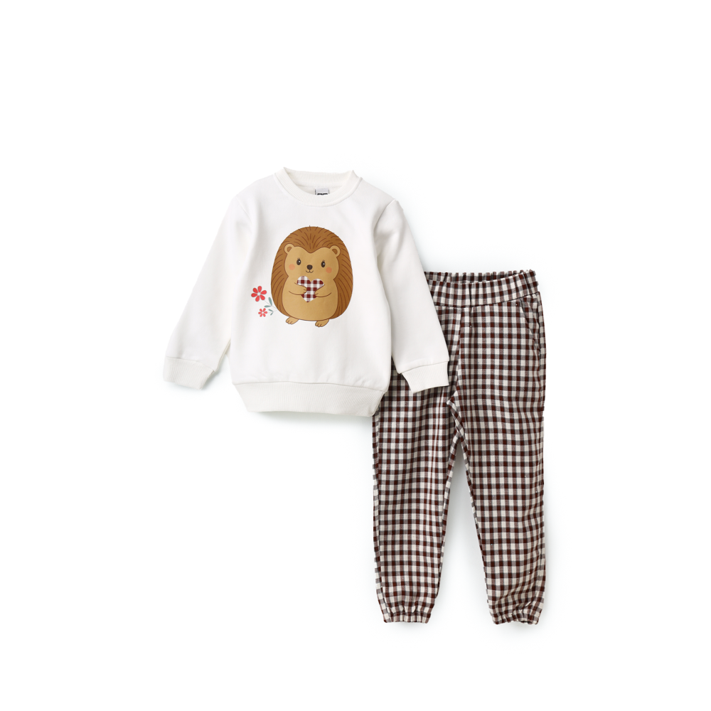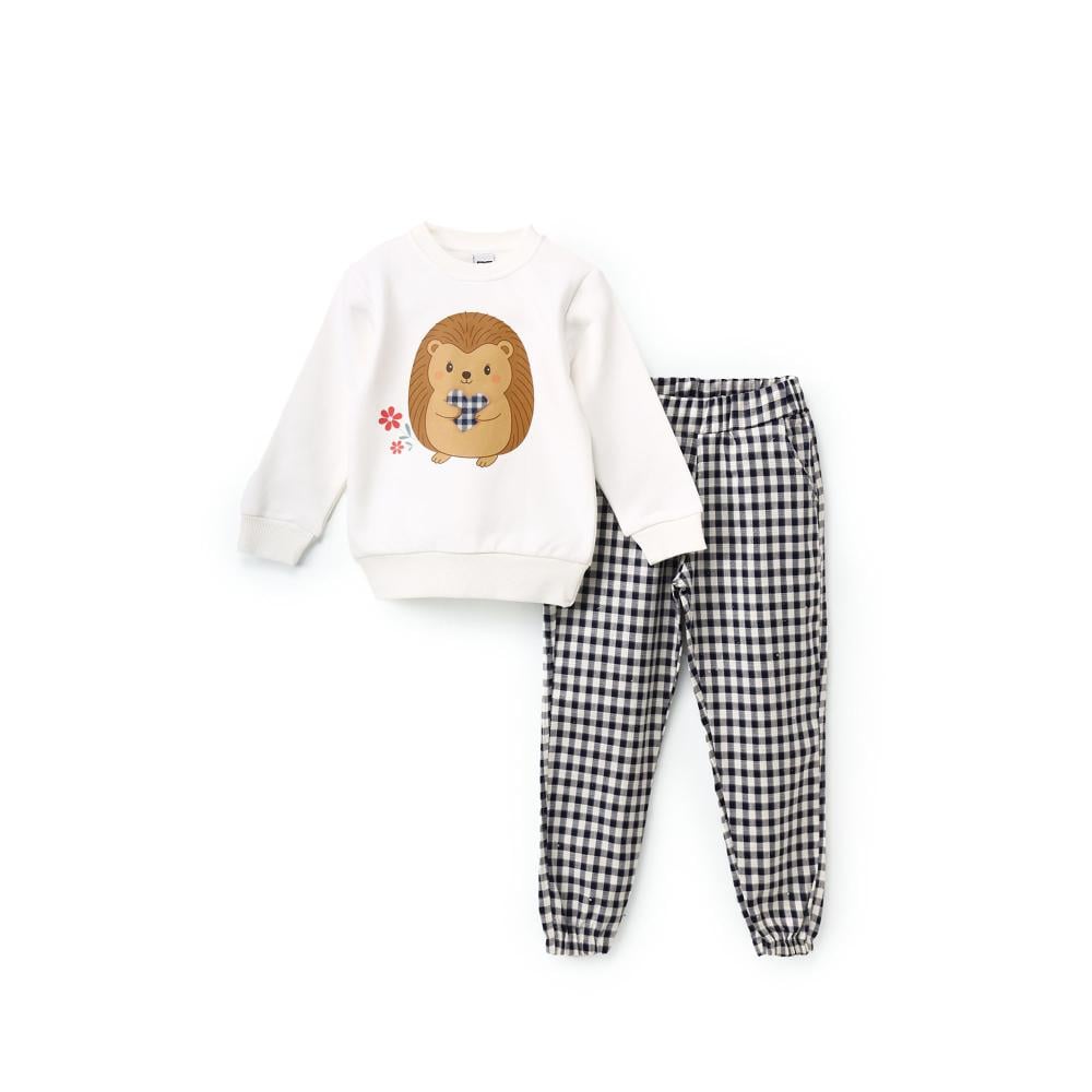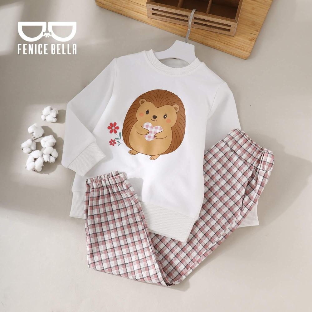 بيجامة بناتي الكنزة ميلتون مطبوع قنفذ وزهرة والبنطال نسيج كارو