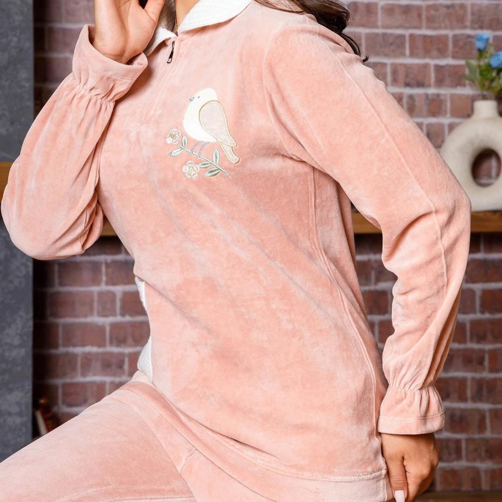 بيجامة حريمي قطيفة مطرزة عصفورة علي غصن