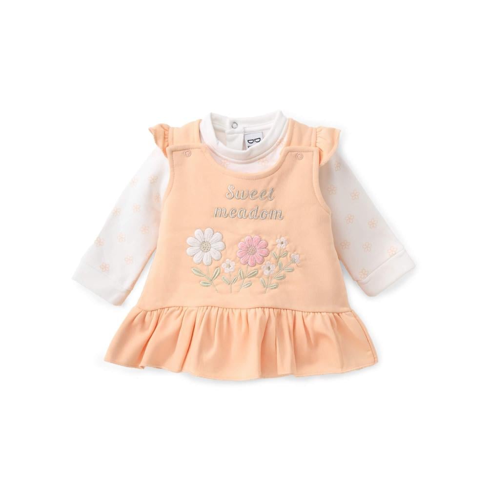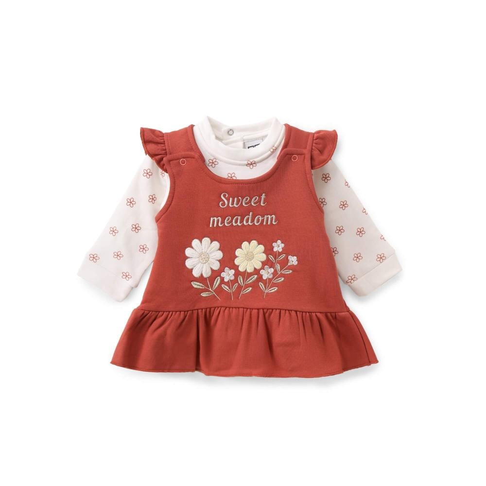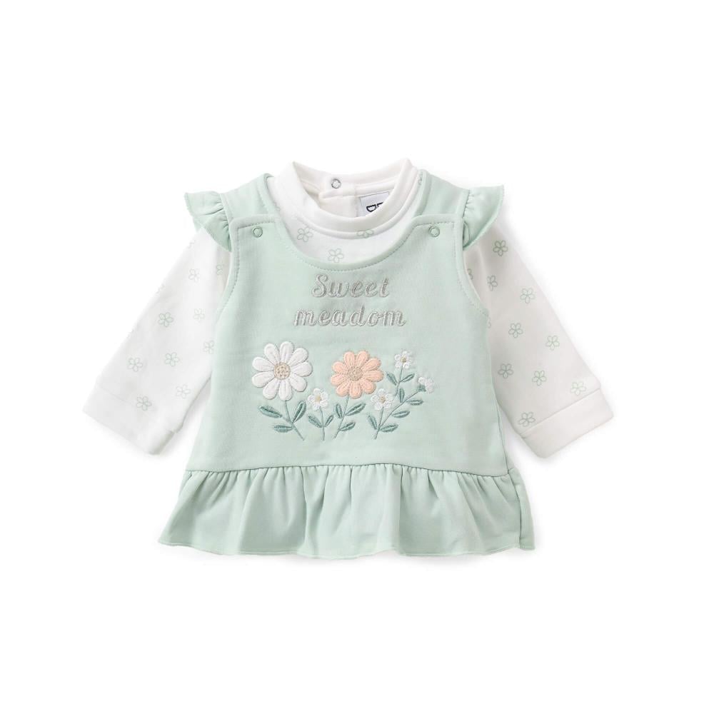 فستان بيبي ميلتون مطرز ازهار + كلمة Sweet meadow + كنزة مطبوعة ازهار